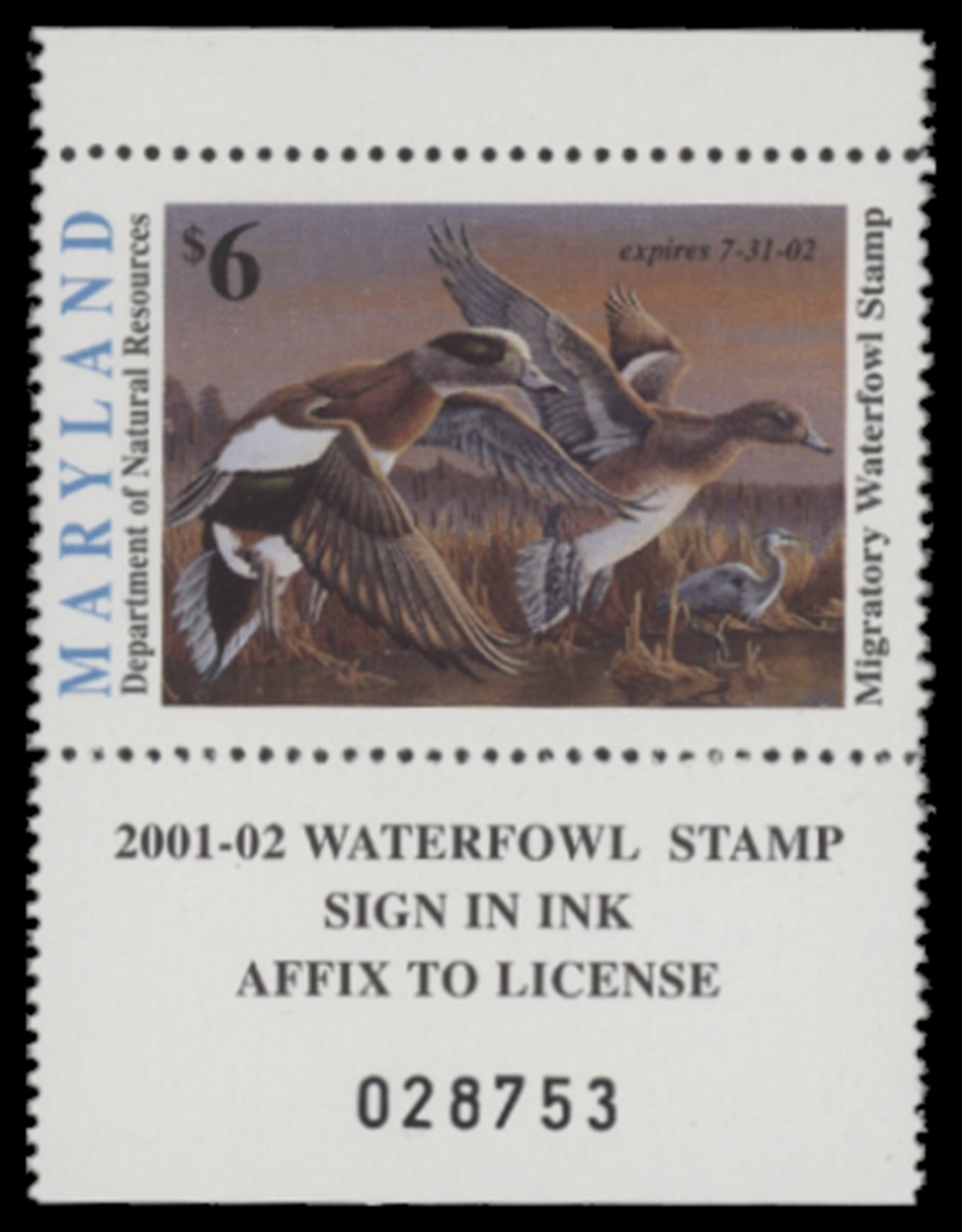 MD28 2001 State Duck Stamp. Mint Never Hinged. Very Fine.