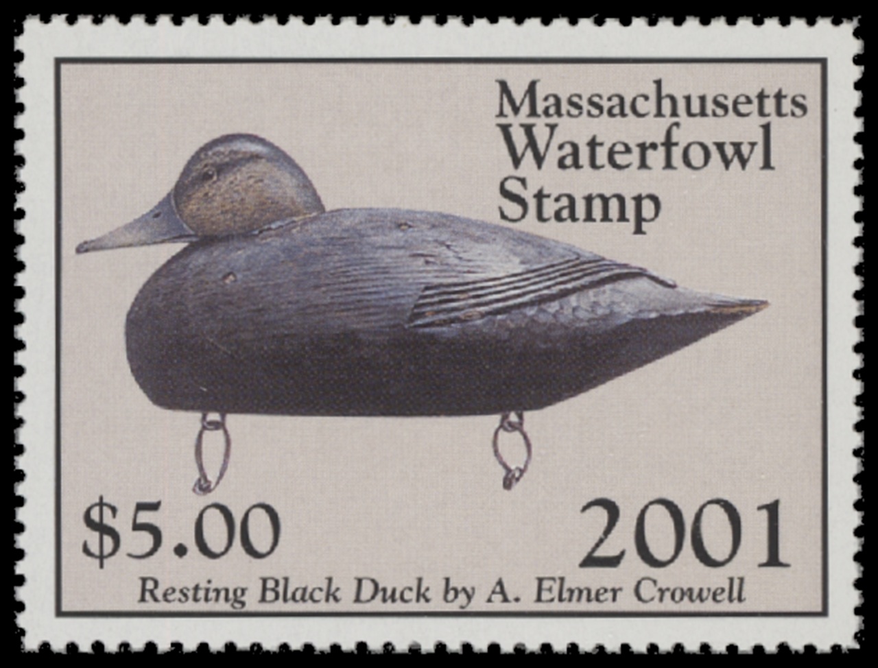MA28 2001 State Duck Stamp. Mint Never Hinged. Very Fine. Black Duck by Barry Julius.