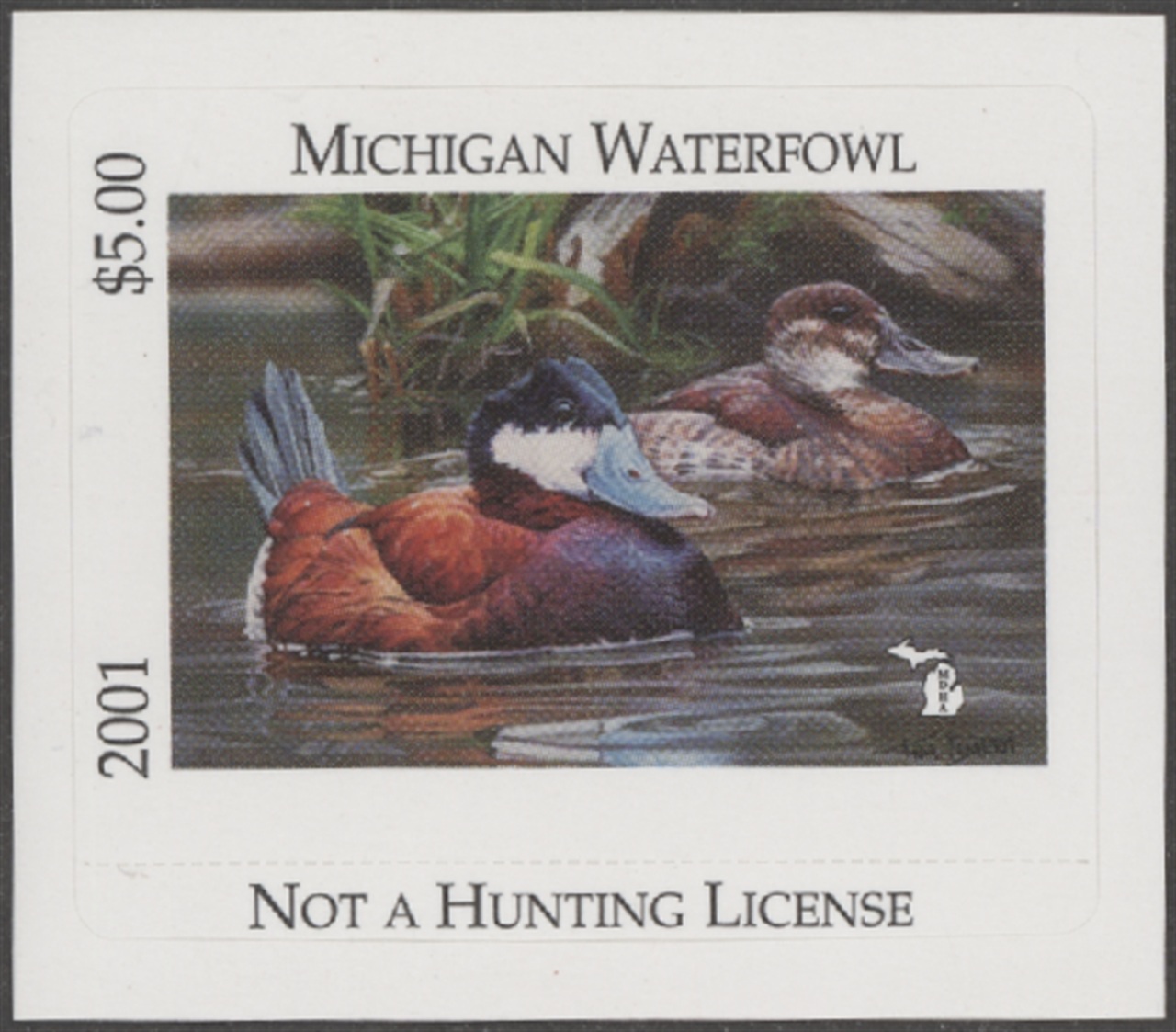 MI26 2001 State Duck Stamp. Mint Never Hinged. Very Fine. Ruddy Ducks by Kim Diment.