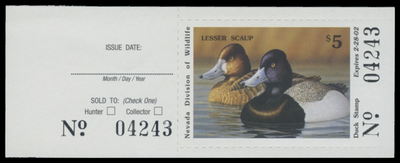 NV23H 2001 State Duck Stamp. Mint Never Hinged. Very Fine. Lesser Scaup by Jeffrey Klinefelter.