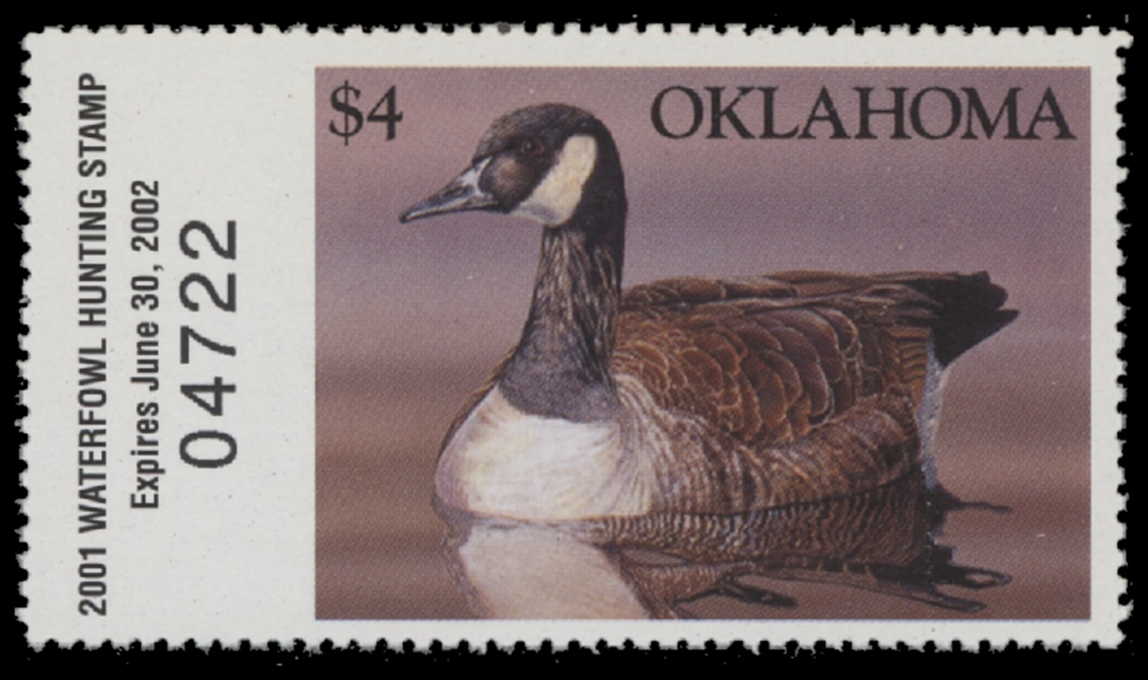 OK22 2001 State Duck Stamp. Mint Never Hinged. Very Fine. Canada Goose by Daniel Brevick.