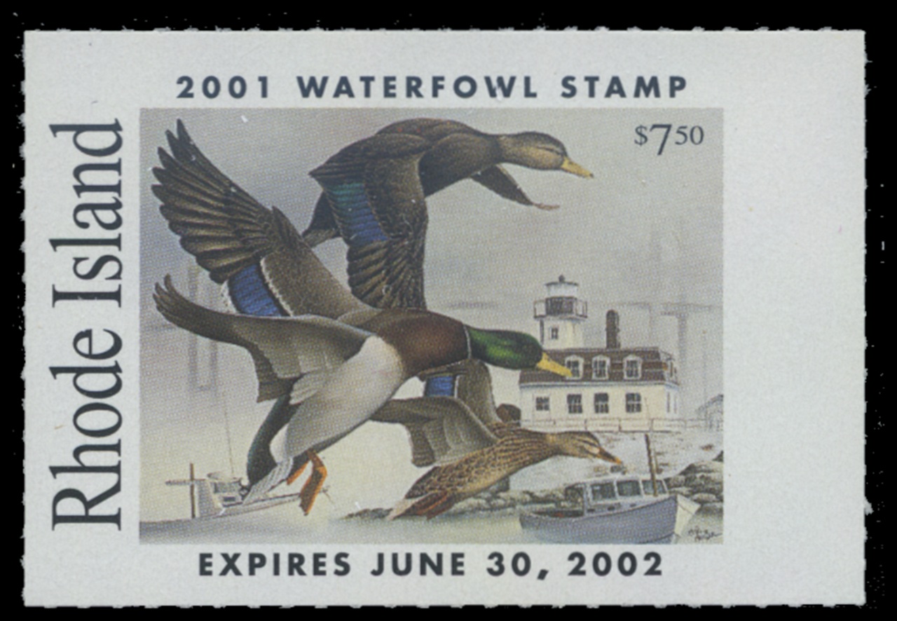 RI13 2001 State Duck Stamp. Mint Never Hinged. Very Fine. Mallards by Keith Mueller.
