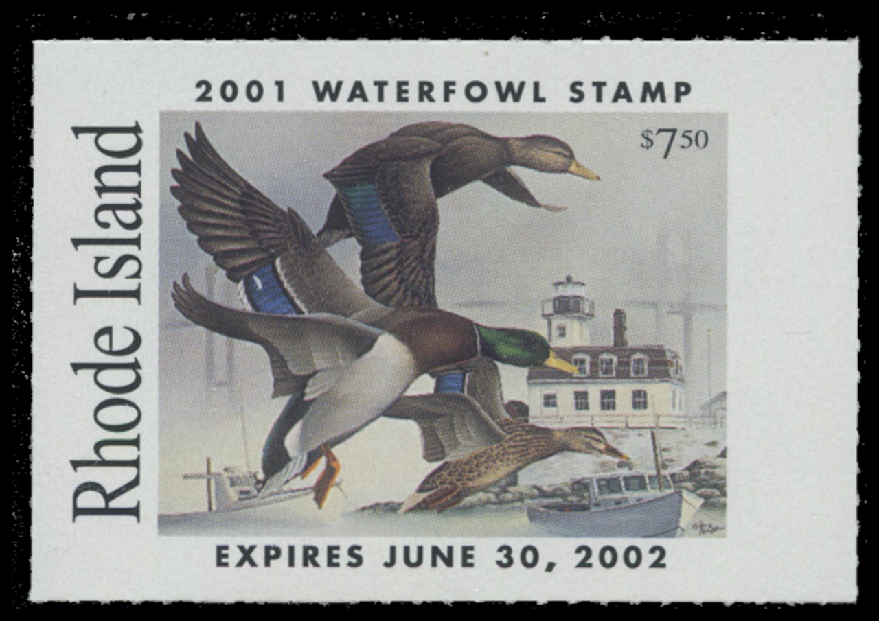RI13 2001 State Duck Stamp. Mint Never Hinged. Very Fine. Mallards by Keith Mueller.