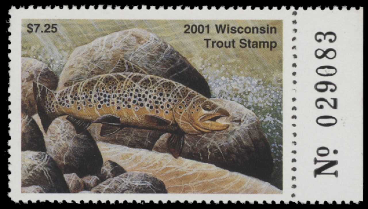 2001 Wisconsin Trout Stamp. Mint Never Hinged. Very Fine.