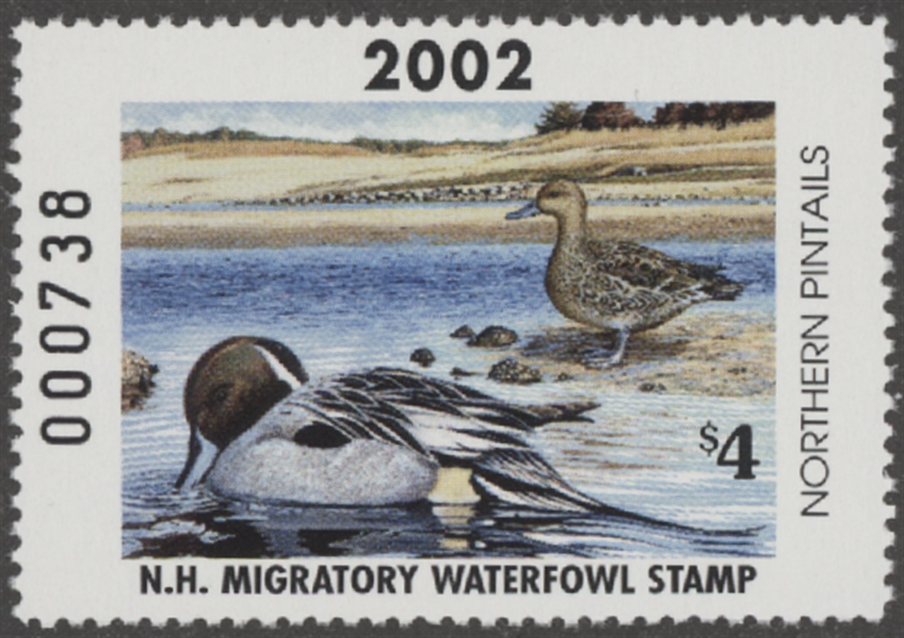 NH20 2002 State Duck Stamp. Mint Never Hinged. Very Fine. Pintails by James Collins.
