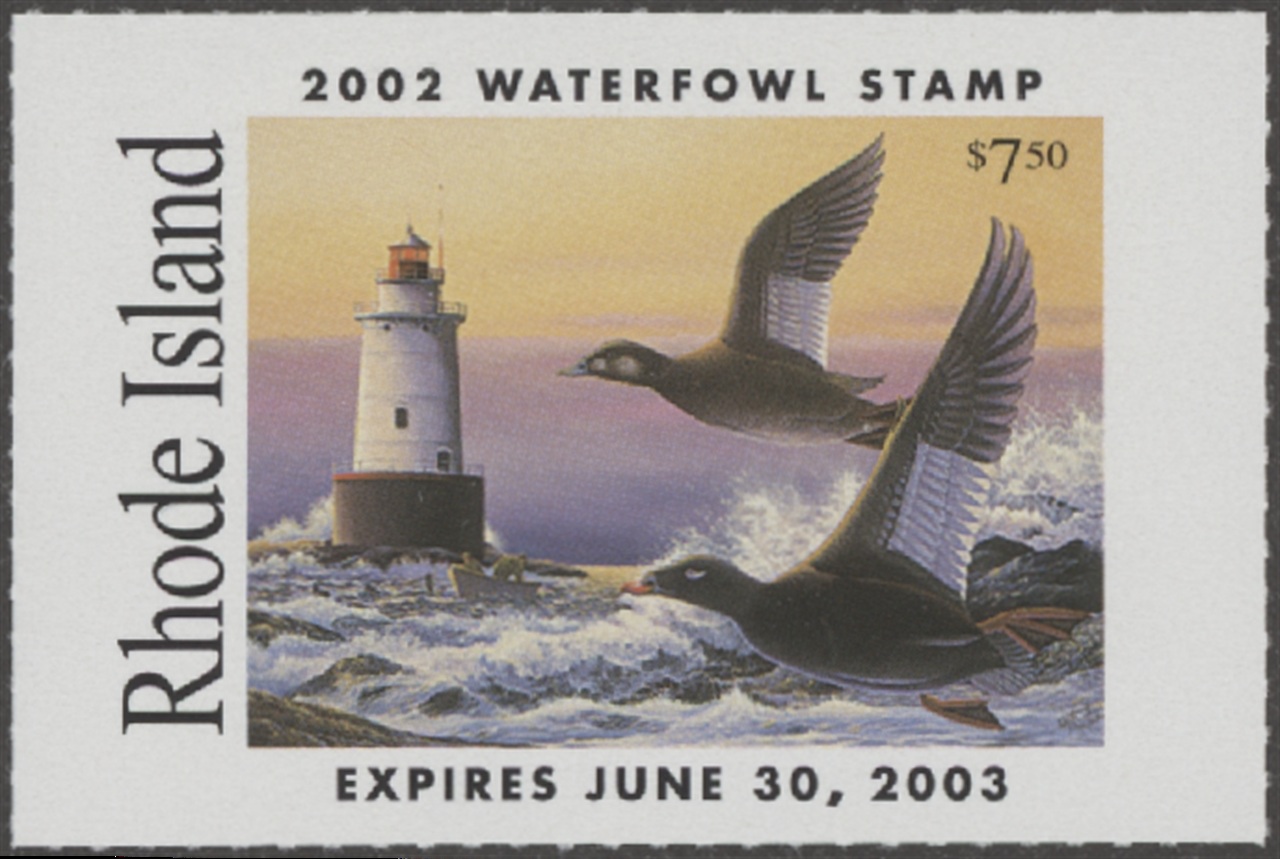 RI14 2002 State Duck Stamp. Mint Never Hinged. Very Fine. Scoters by Keith Mueller.