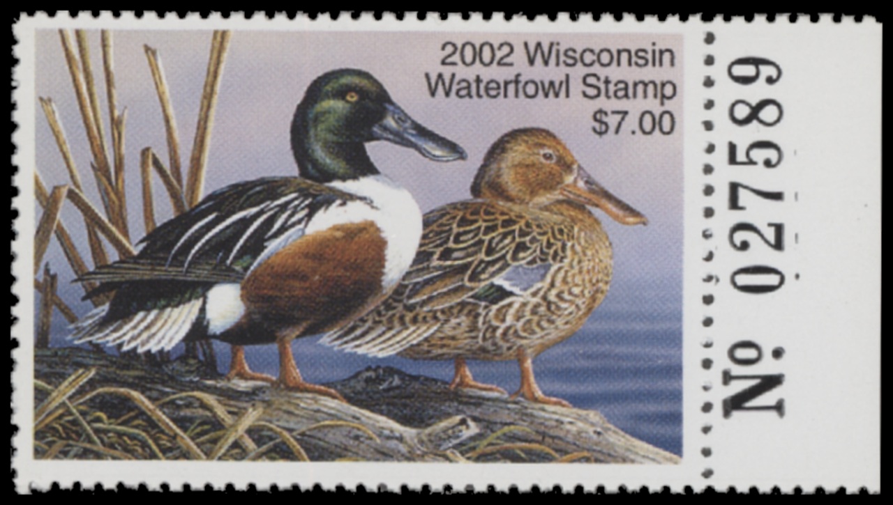 WI25 2002 State Duck Stamp. Mint Never Hinged. Very Fine. Shovelers by Terry Doughty.