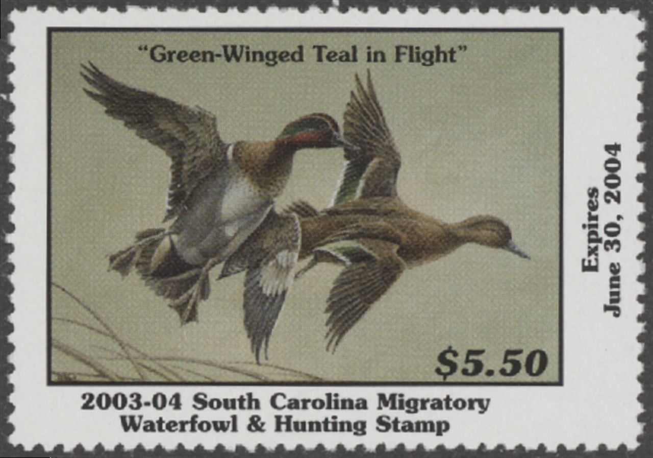 SC23 2003 State Duck Stamp. Mint Never Hinged. Very Fine. Green-winged Teal by James A. Hublick.