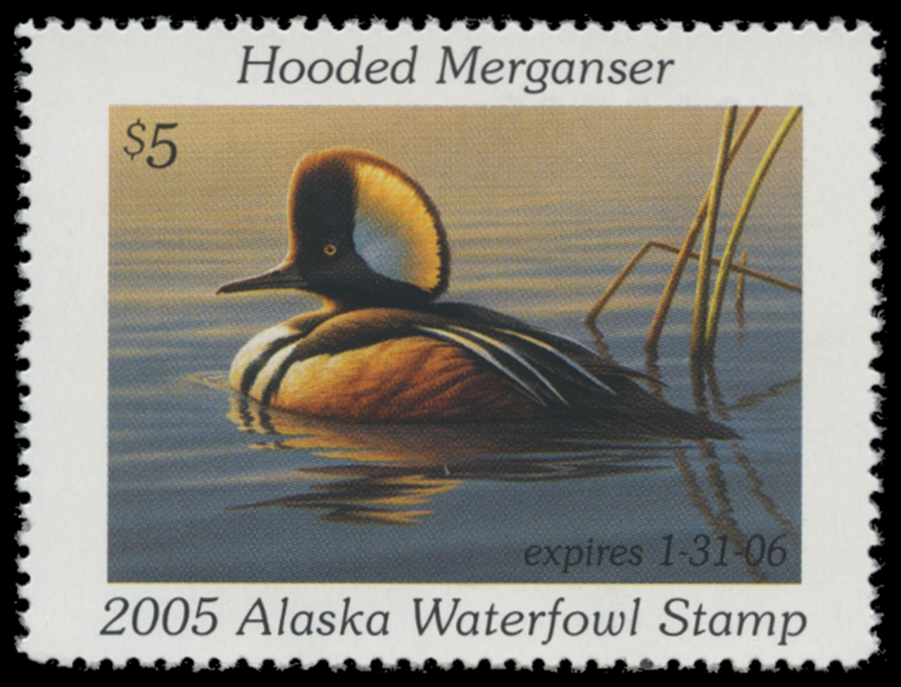 AK21 2005 State Duck Stamp. Mint Never Hinged. Very Fine. Hooded Merganser by Don Moore.