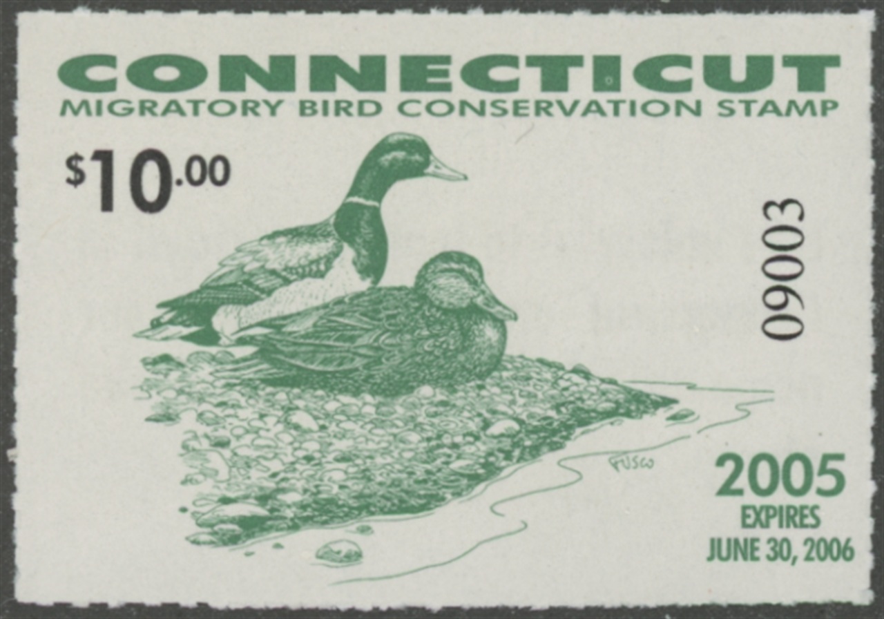 CT13 2005 State Duck Stamp. Mint Never Hinged. Very Fine. Mallards by Paul Fusco.