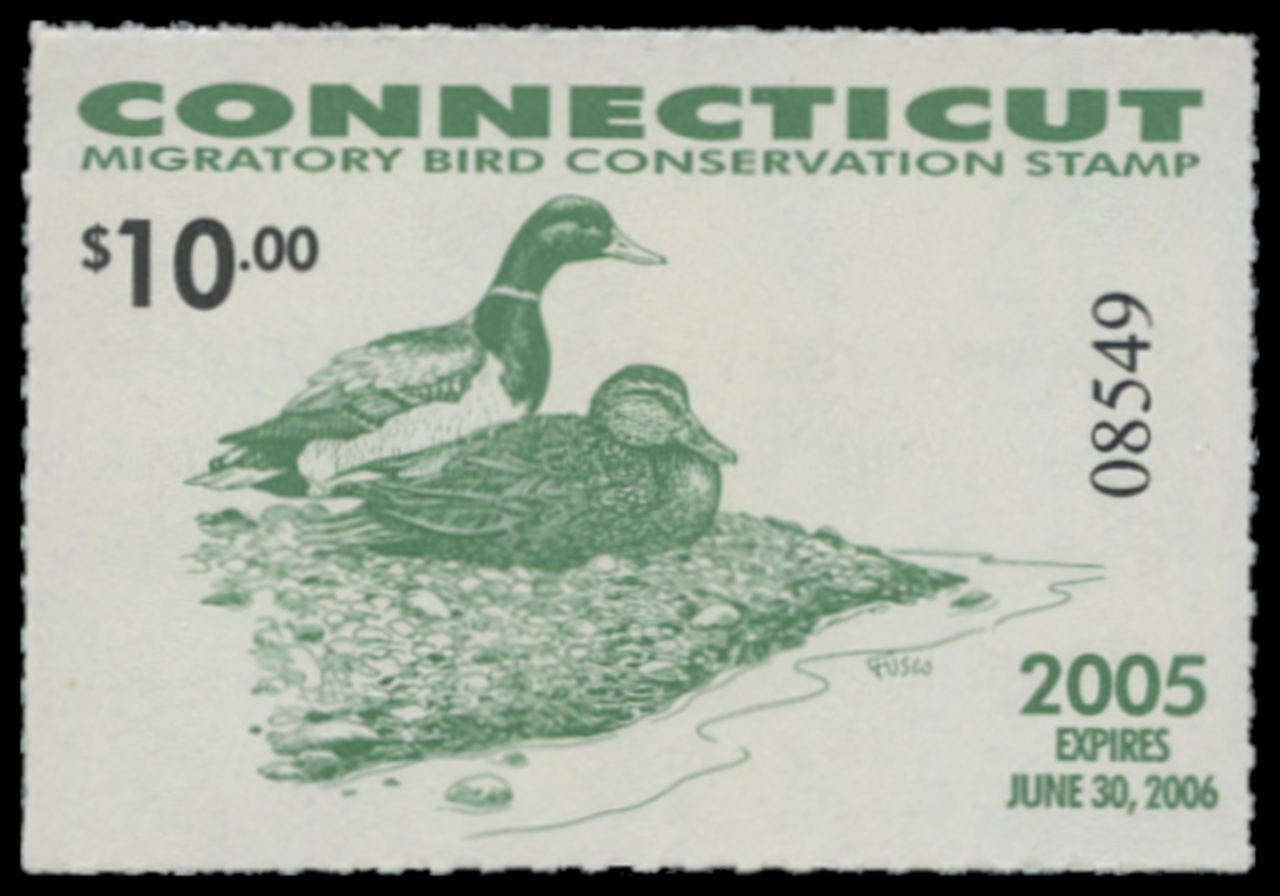 CT13 2005 State Duck Stamp. Mint Never Hinged. Very Fine. Mallards by Paul Fusco.
