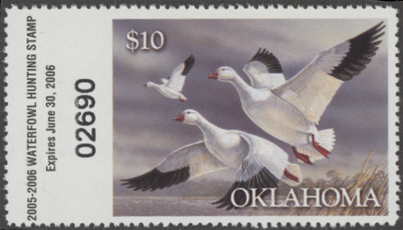 OK26 2005 State Duck Stamp. Mint Never Hinged. Very Fine. Snow Geese by Jeffrey Klinefelter.