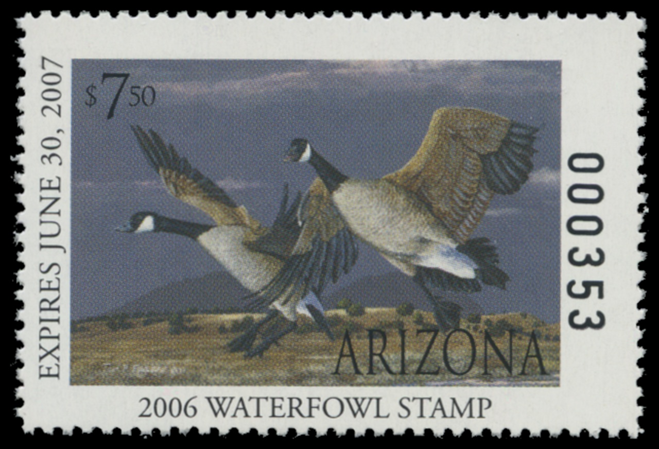 AZ20 2006 State Duck Stamp. Mint Never Hinged. Very Fine. Canada Geese by Tom Finley.