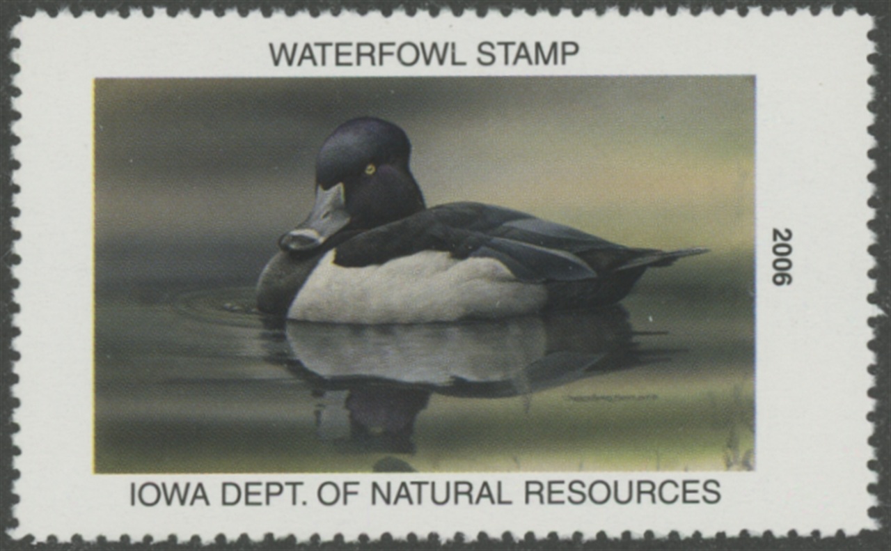 IA35 2006 State Duck Stamp. Mint Never Hinged. Very Fine. Ring-necked Duck by Sherry Russell Meline.