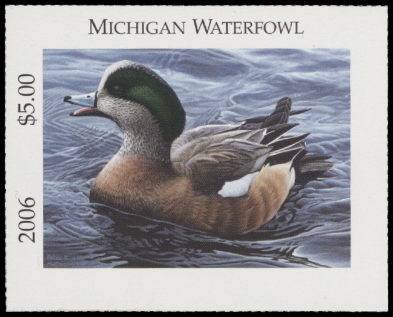 MI31 2006 State Duck Stamp. Mint Never Hinged. Very Fine. Wigeon by Peter Mathios.