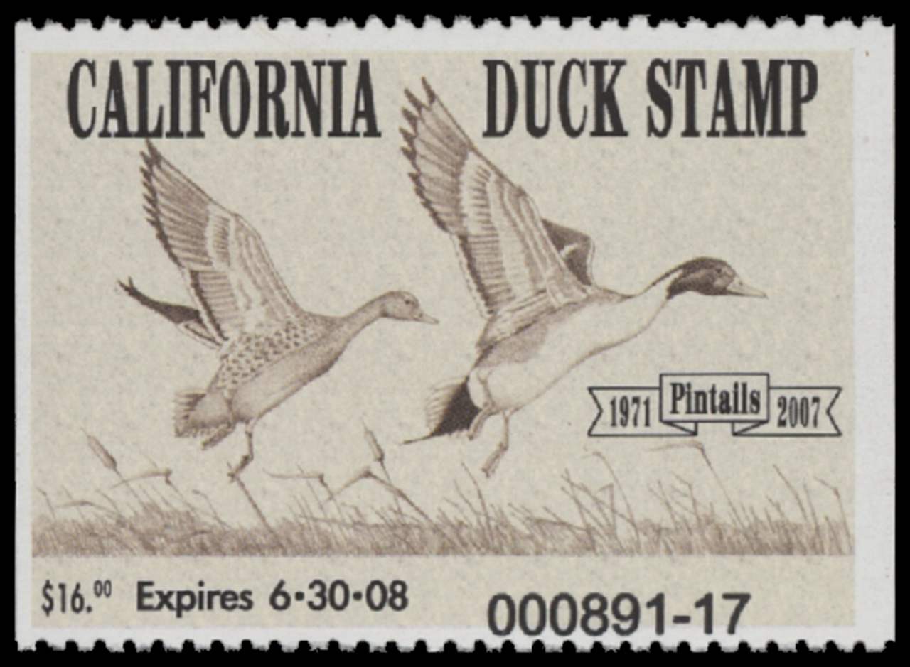 CA37 2007 State Duck Stamp. Mint Never Hinged. Very Fine. White Fronted Geese by Sherrie R. Meline.