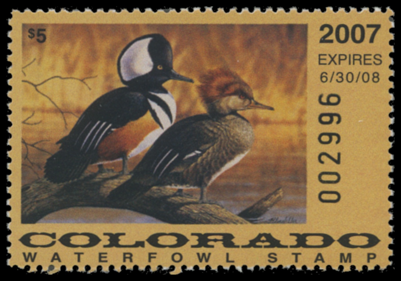 CO18 2007 State Duck Stamp. Mint Never Hinged. Very Fine. Hooded Mergansers by Jeffrey Klinefelter.
