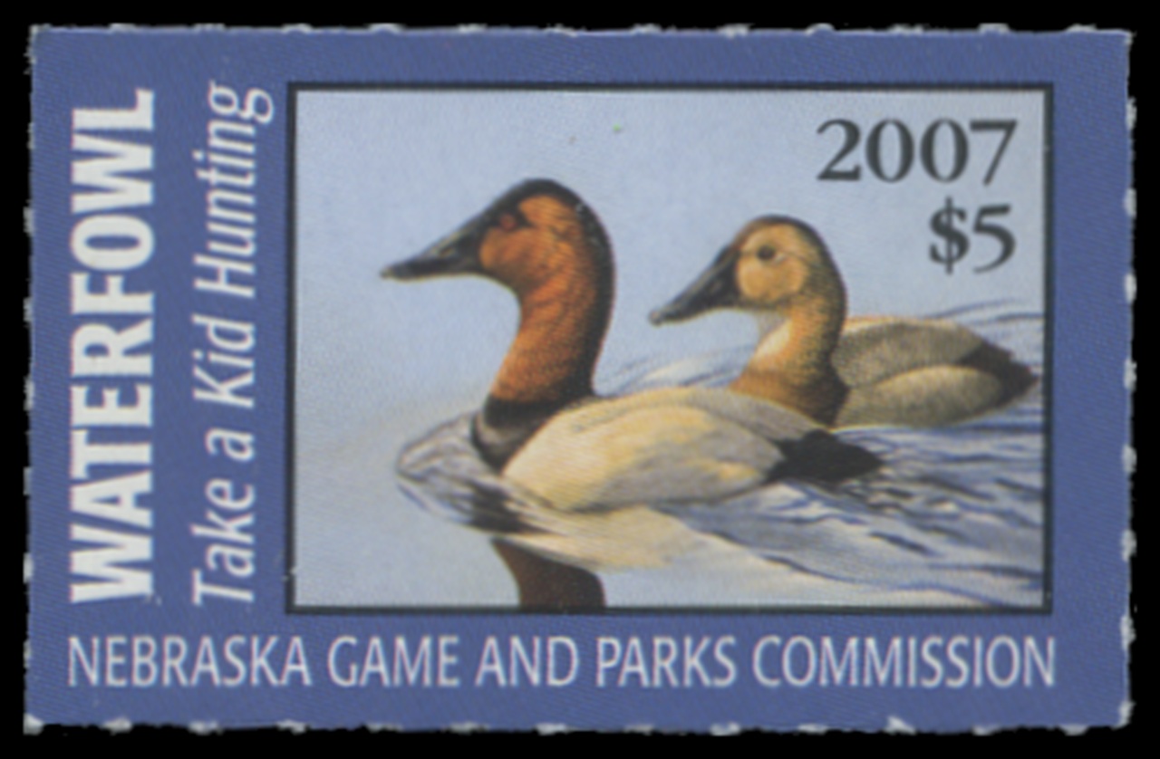 NE7 2007 State Duck Stamp. Mint Never Hinged. Very Fine. Canvasbacks by Brett Cooper.