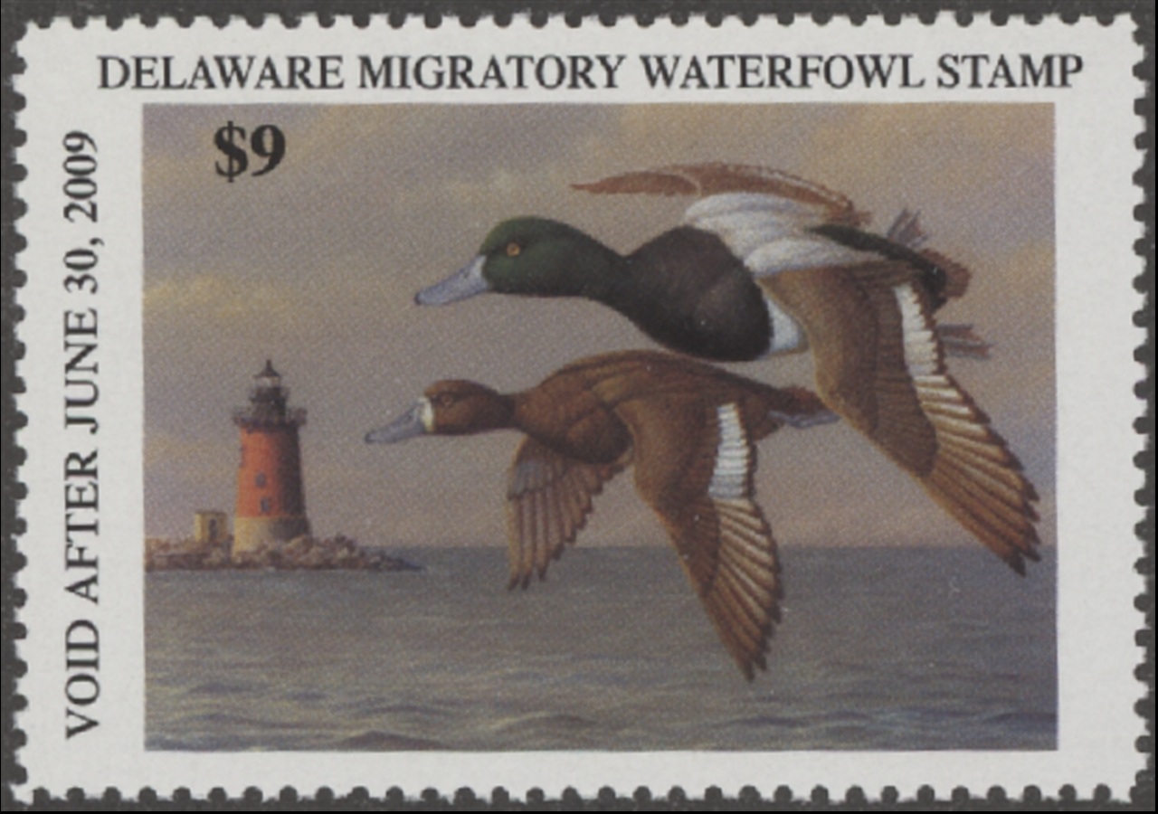 DE29 2008 State Duck Stamp. Mint Never Hinged. Very Fine. Pair of Greater Scaup by John Steward.