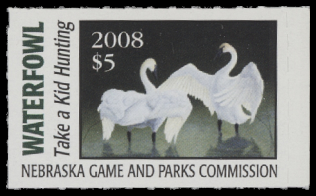 NE8 2008 State Duck Stamp. Mint Never Hinged. Very Fine. Trumpeter Swans by Brett Cooper.