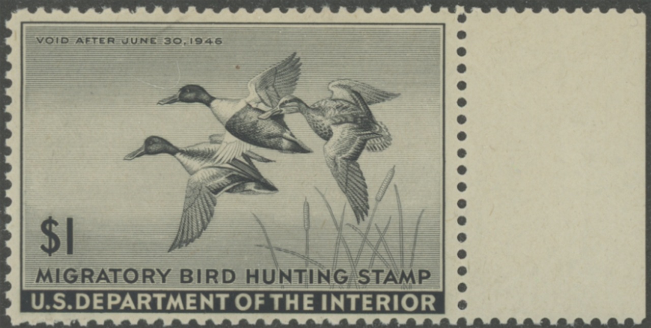 RW12 1945 Federal Duck Stamp. Mint Never Hinged, Gum Creases. Fine - Very Fine. Shovelers by Owen Gromme.