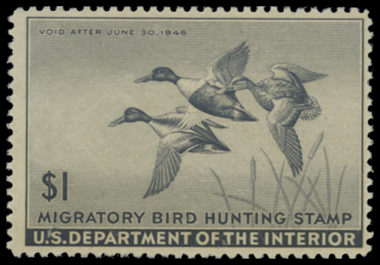 RW12 1945 Federal Duck Stamp. Mint Lightly Hinged. Fine - Very Fine. Shovelers by Owen Gromme.