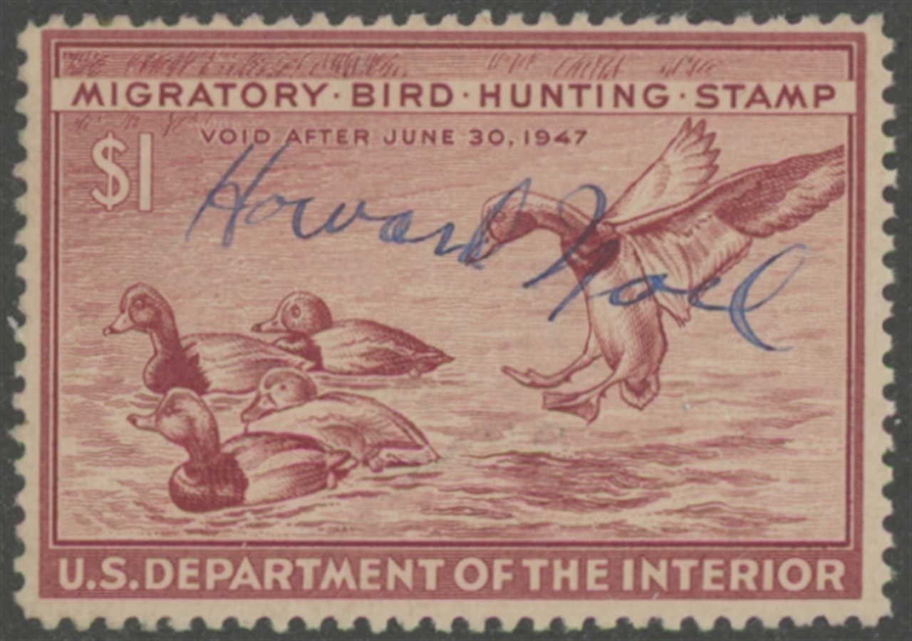 RW13 1946 Federal Duck Stamp. Used. Fine Centering. Redhead Ducks by Robert W. Hines.