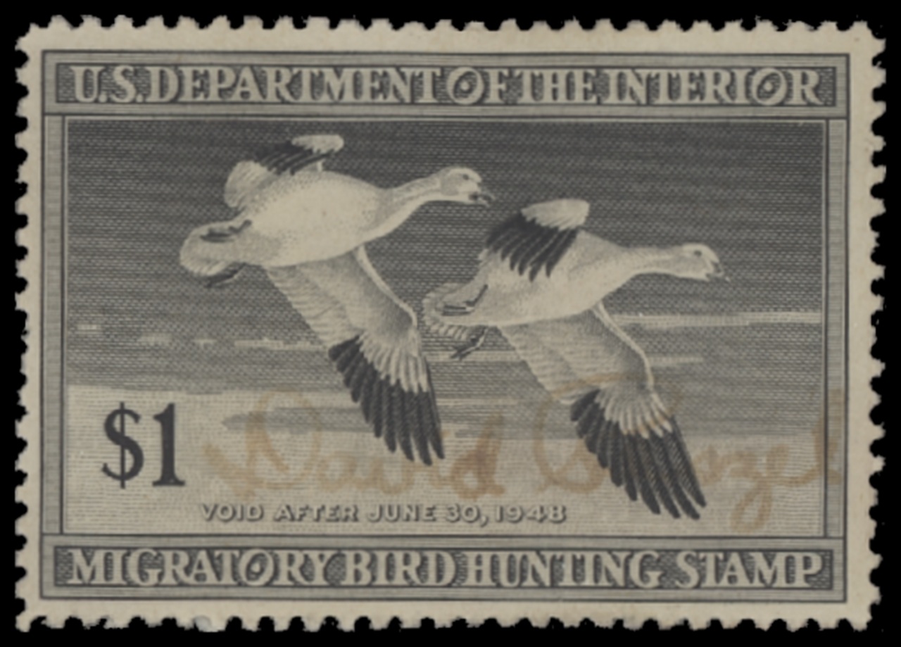 RW14 1947 Federal Duck Stamp. Used. Fine - Very Fine. Snow Geese by Jack Murray.