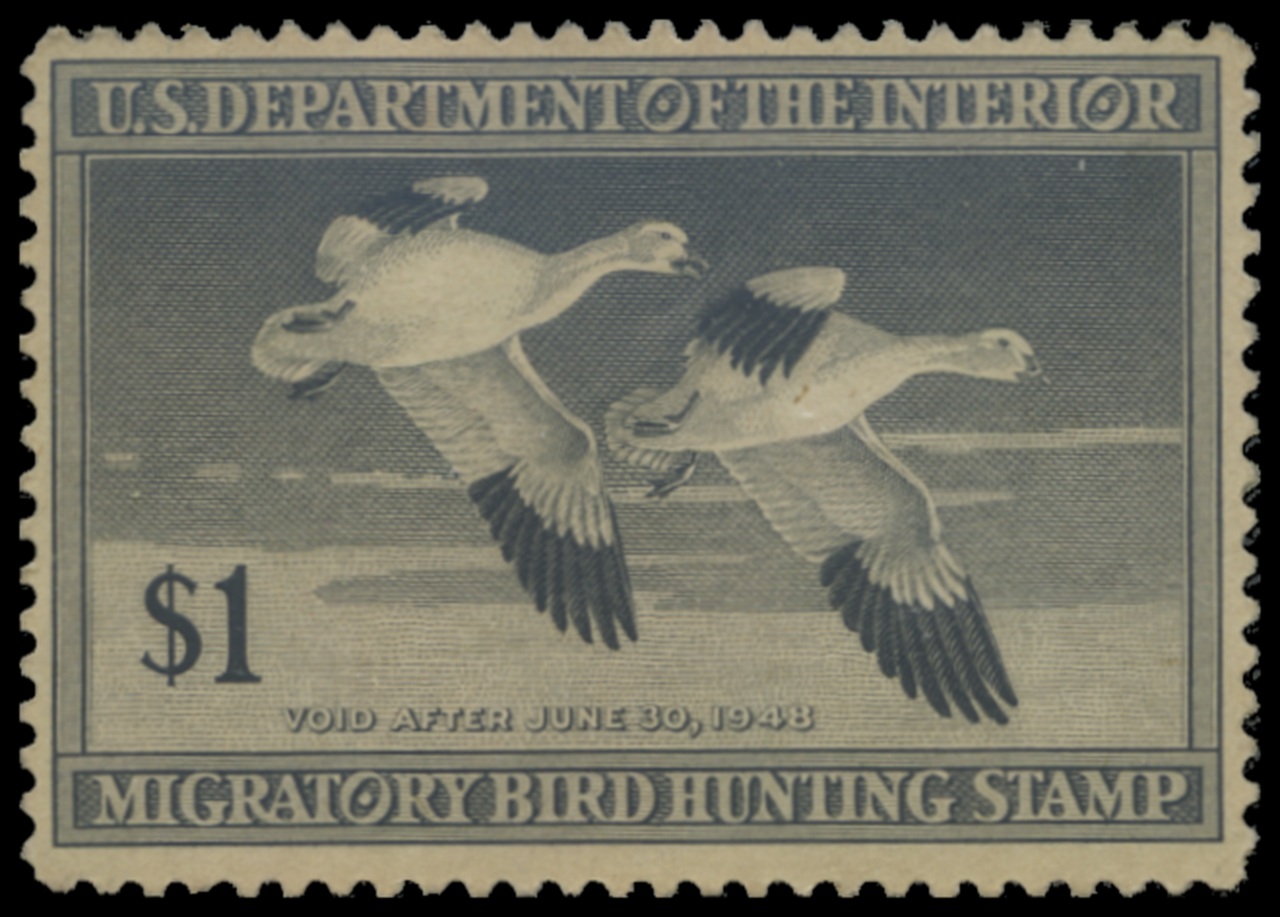 RW14 1947 Federal Duck Stamp. Unsigned, No Gum. Fine - Very Fine. Snow Geese by Jack Murray.
