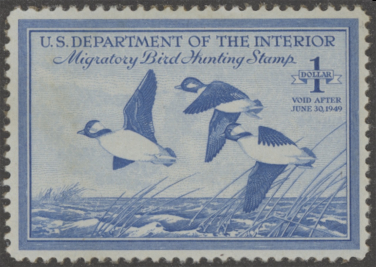 RW15 1948 Federal Duck Stamp. Mint Never Hinged. Very Fine Centering. Buffleheads by Maynard Reese (Reese's First Win).