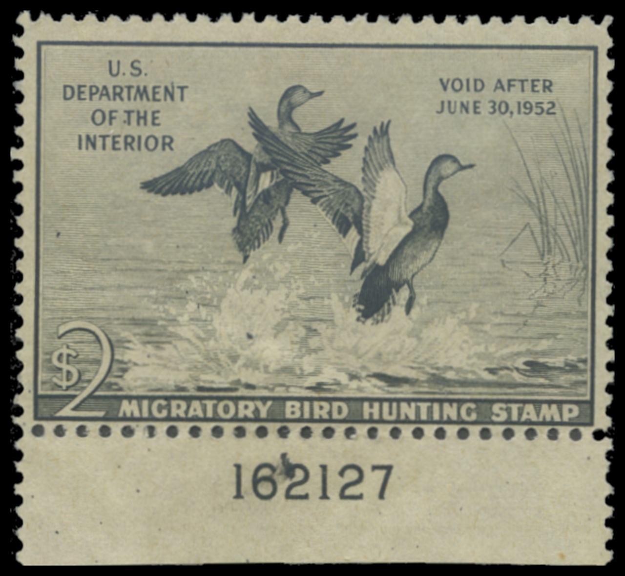 RW18 1951 Federal Duck Stamp. Mint Lightly Hinged. Fine - Very Fine. A Pair of Gadwalls by Maynard Reece.