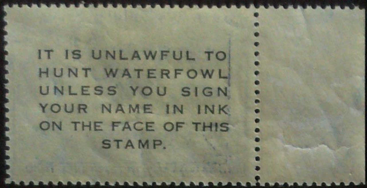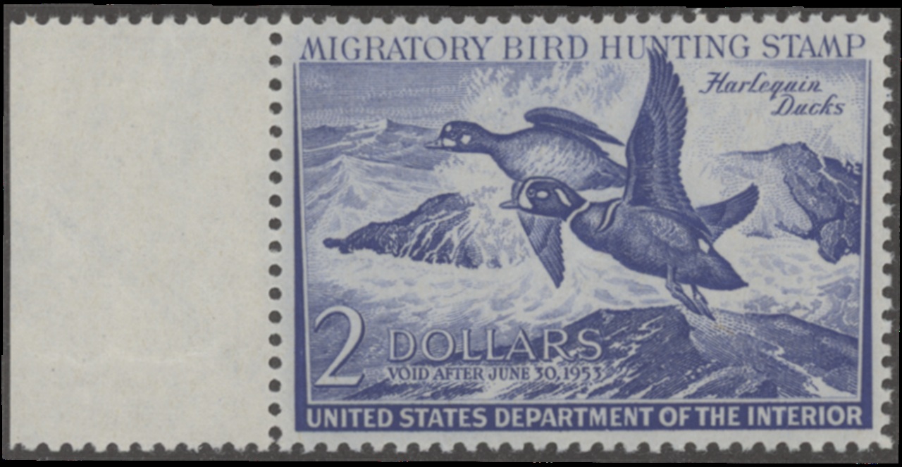 RW19 1952 Federal Duck Stamp. Mint Never Hinged. Fine - Very Fine, Gum Skips on Selvage. Harlequin Ducks by John H. Dick.