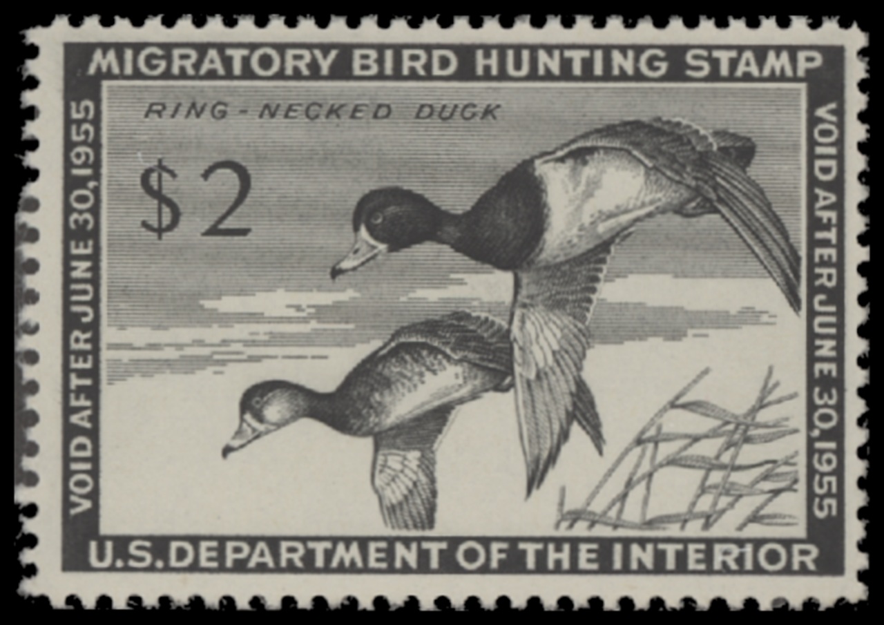 RW21 1954 Federal Duck Stamp. Mint Never Hinged. Fine - Very Fine. Ring-necked Duck by Harvey Sandstrom.