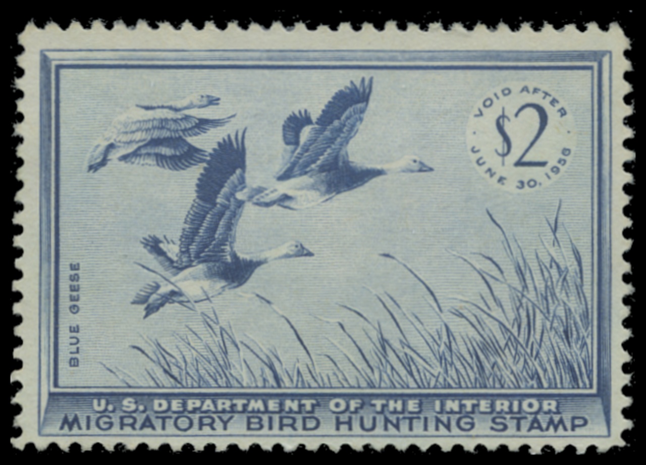 RW22 1955 Federal Duck Stamp. Mint Never Hinged. Fine - Very Fine. Blue goose by Stanley Sterns.