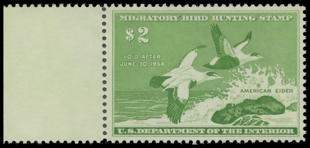 RW24 1957 Federal Duck Stamp. Mint Never Hinged. Fine - Very Fine. American Eiders by Jackson Miles Abbot.