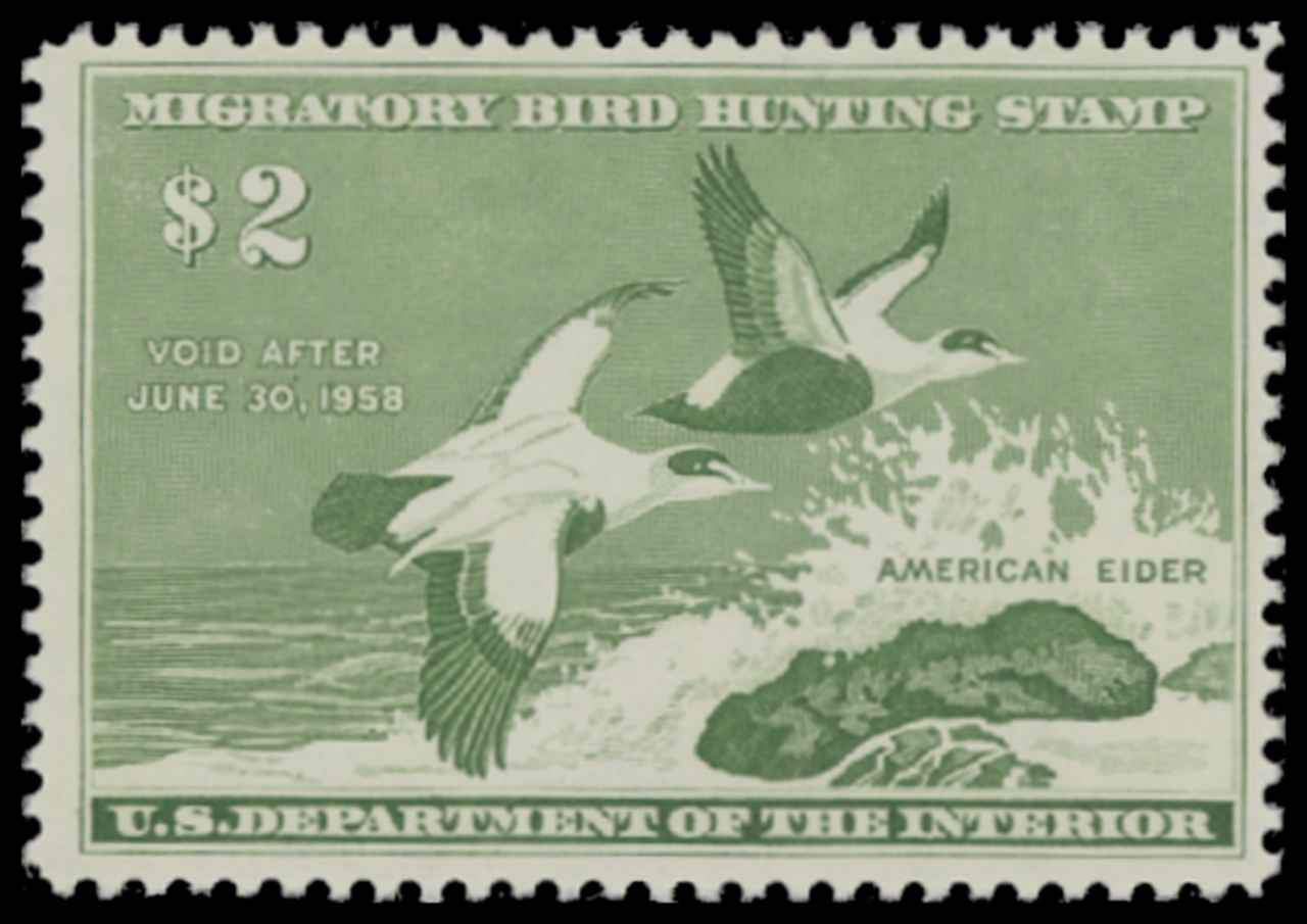 RW24 1957 Federal Duck Stamp. Mint Never Hinged. Fine - Very Fine. American Eiders by Jackson Miles Abbot.