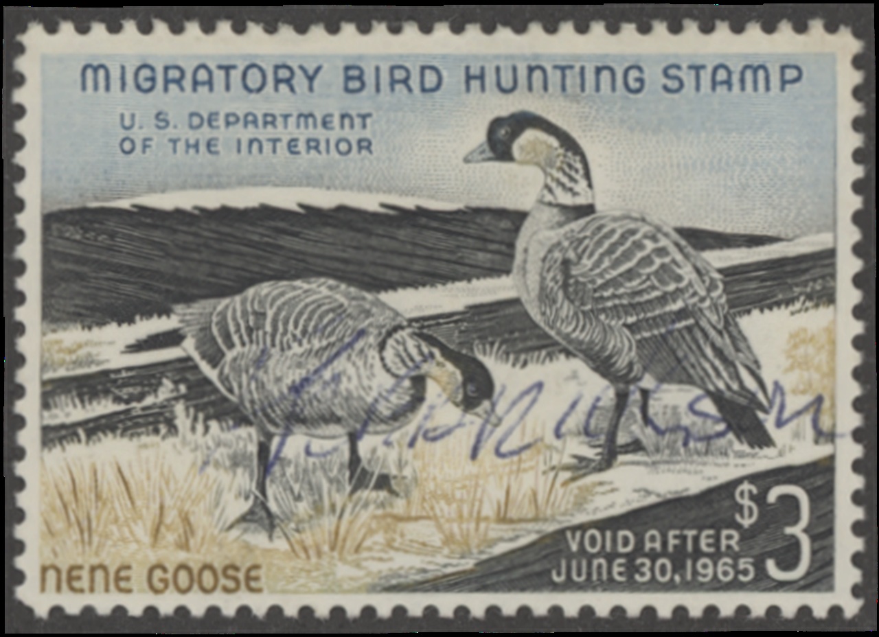 RW31 1964 Federal Duck Stamp. Used, Most Gum Remains. Fine - Very Fine Centering. Nene Goose by Stanley Sterns.