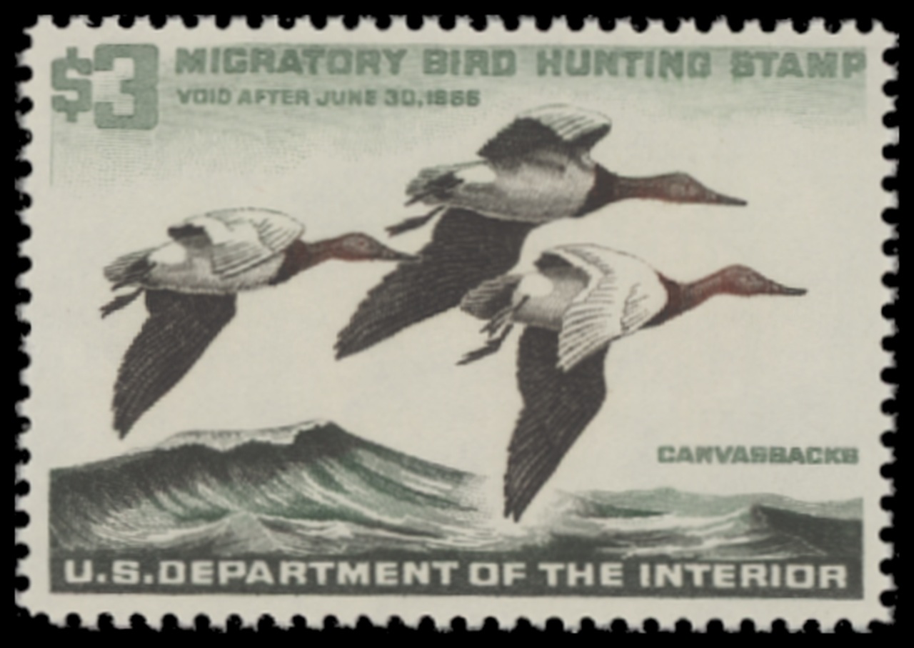 RW32 1966 Federal Duck Stamp. Mint Never Hinged. Fine - Very Fine. Canvasbacks by Ron Jenkins.