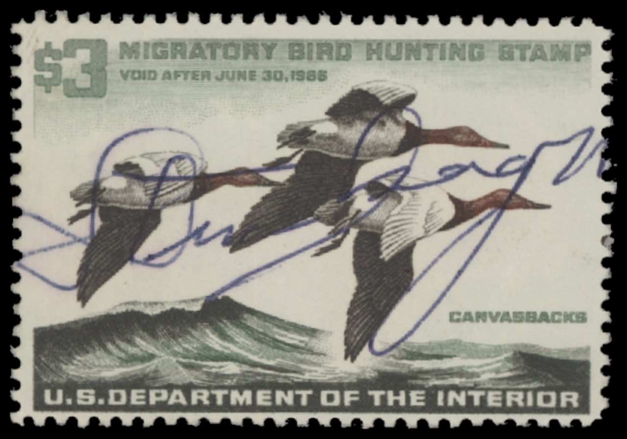 RW32 1966 Federal Duck Stamp. Used. Fine - Very Fine. Canvasbacks by Ron Jenkins.