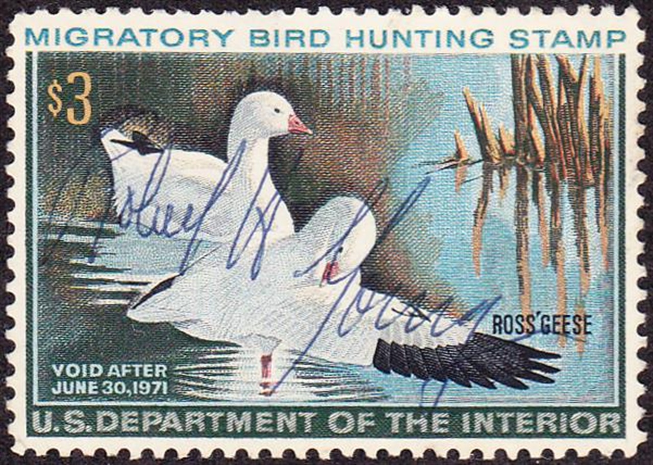 RW37 1970 Federal Duck Stamp. Used with Full Gum and Light Hinge Mark. Very Fine.