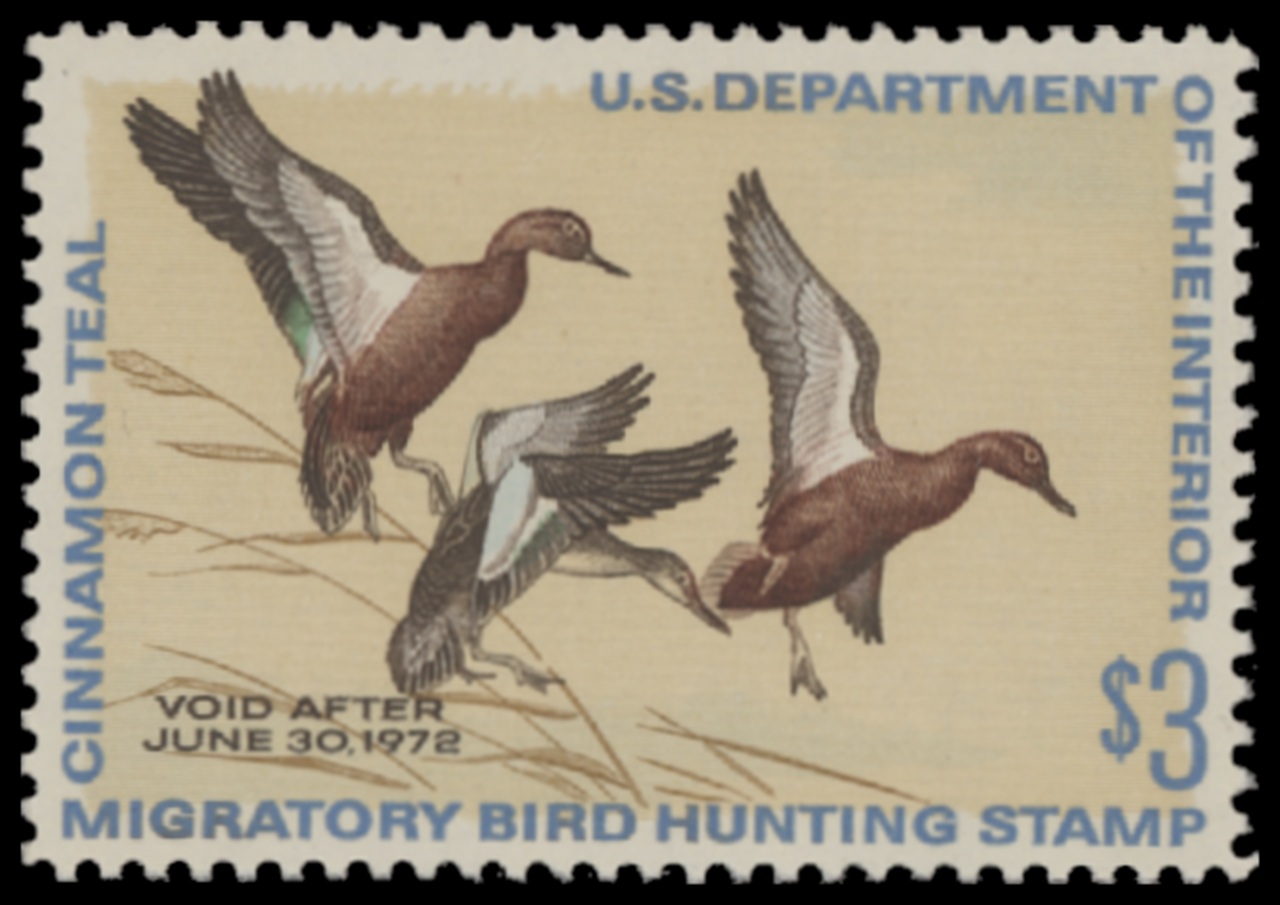 RW38 1971 Federal Duck Stamp. Mint Never Hinged. Fine - Very Fine. Cinnamon Teal by Maynard Reece.