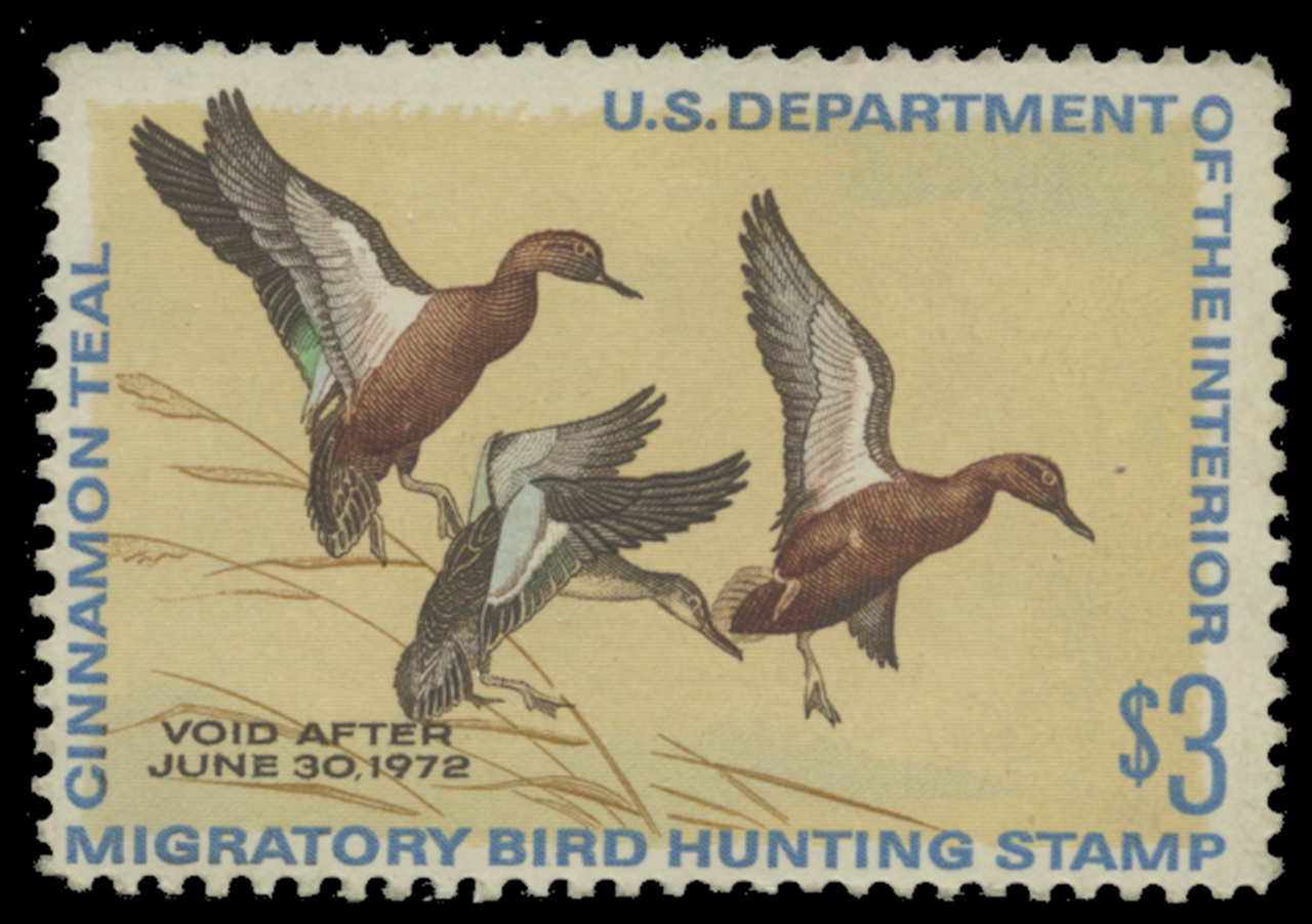 RW38 1971 Federal Duck Stamp. Unsigned, No Gum. Fine - Very Fine. Cinnamon Teal by Maynard Reece.