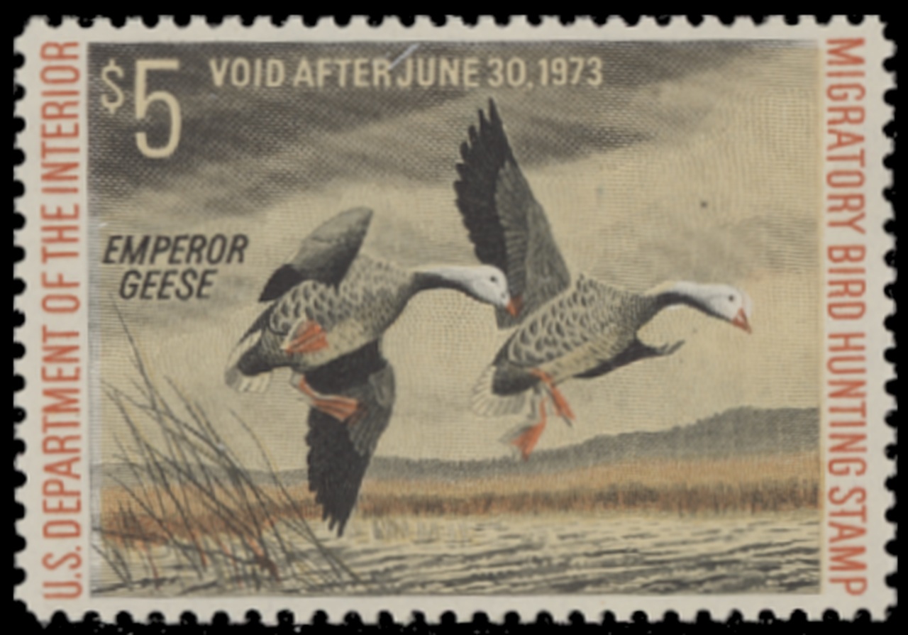 RW39 1972 Federal Duck Stamp. Mint Never Hinged. Fine - Very Fine. Emporer Geese by Arthur M. Cook.