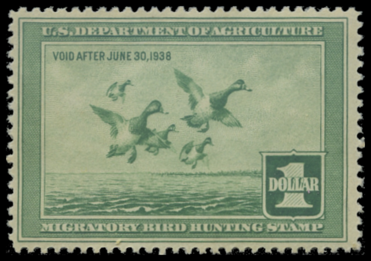 RW4 1937 Federal Duck Stamp. Mint Never Hinged. Fine - Very Fine. Scaup Taking to Flight by J. D. Knap.