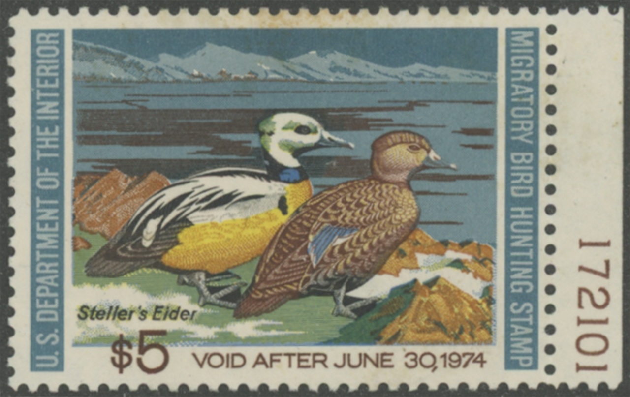 RW40 1973 Federal Duck Stamp. Unsigned, No Gum, Discolored top. Fine - Very Fine Centering.