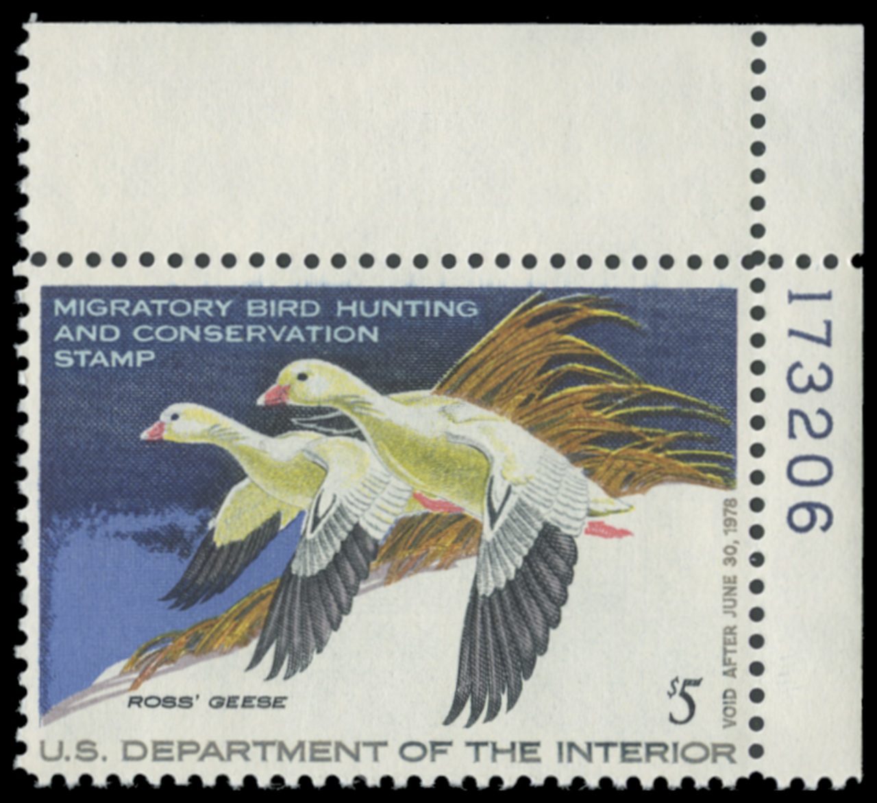RW44 1977 Federal Duck Stamp. Mint Never Hinged. Fine - Very Fine. Ross's Geese by Martin R. Murk.