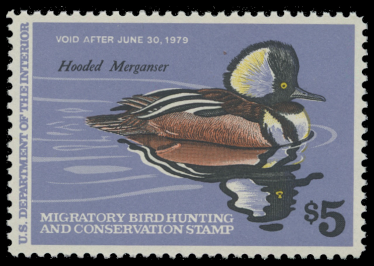 RW45 1978 Federal Duck Stamp. Mint Never Hinged. Fine - Very Fine. Hooded Mergansers by Albert Earl Gilbert.