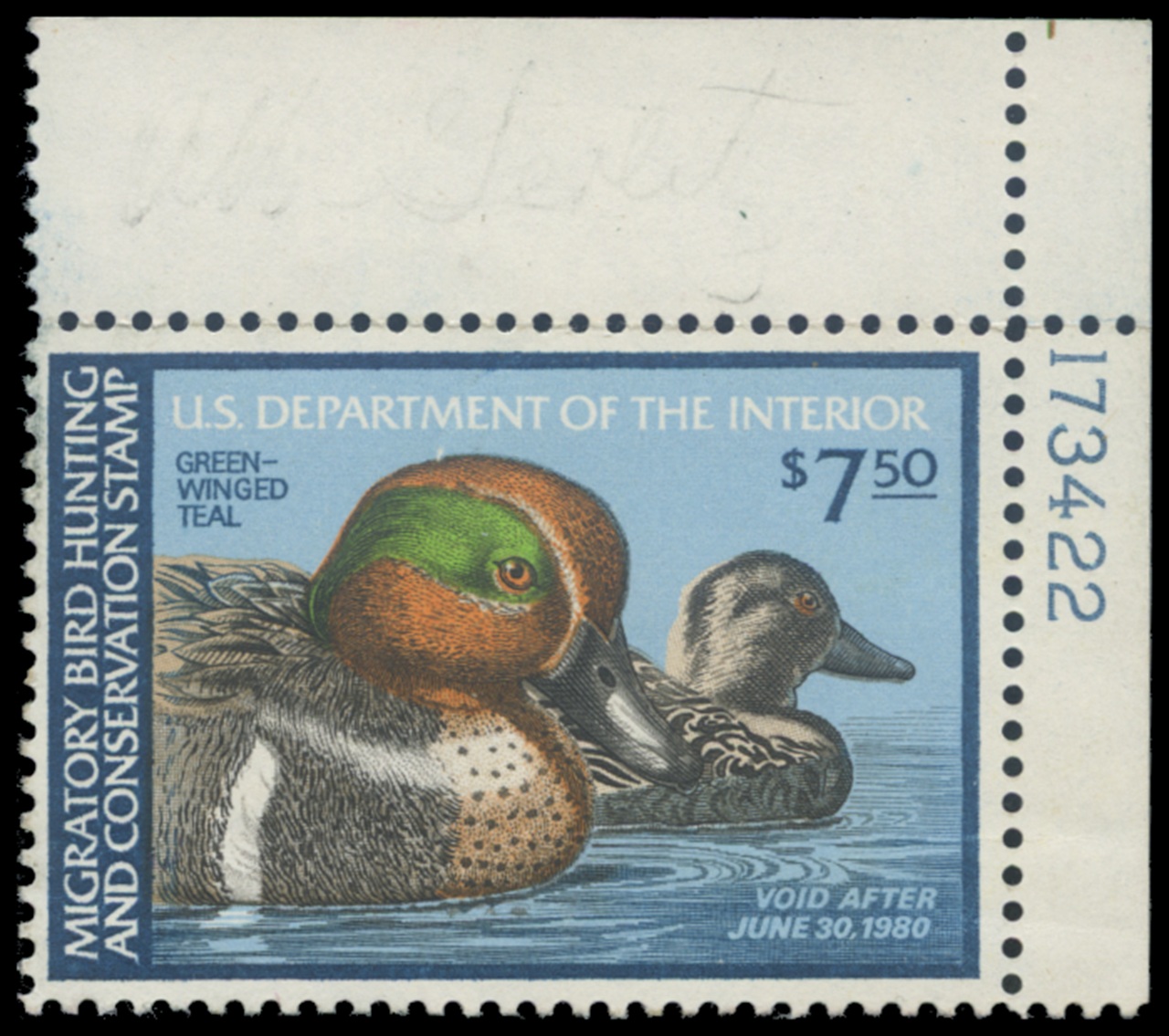 RW46 1979 Federal Duck Stamp. Mint Never Hinged. Fine - Very Fine. Green-wing Teal by Ken Michaelsen.