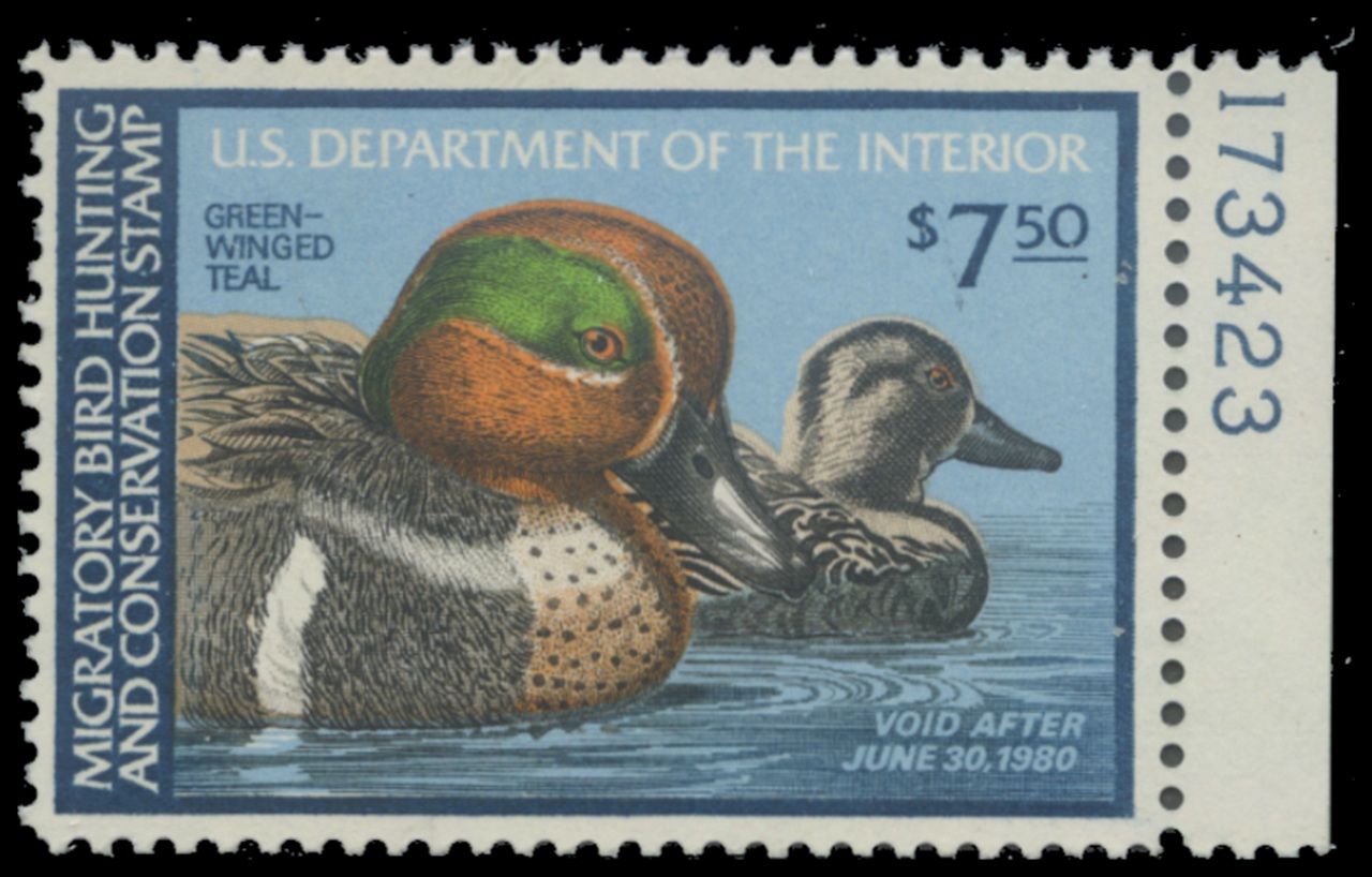 RW46 1979 Federal Duck Stamp. Mint Never Hinged. Fine - Very Fine. Green-wing Teal by Ken Michaelsen.