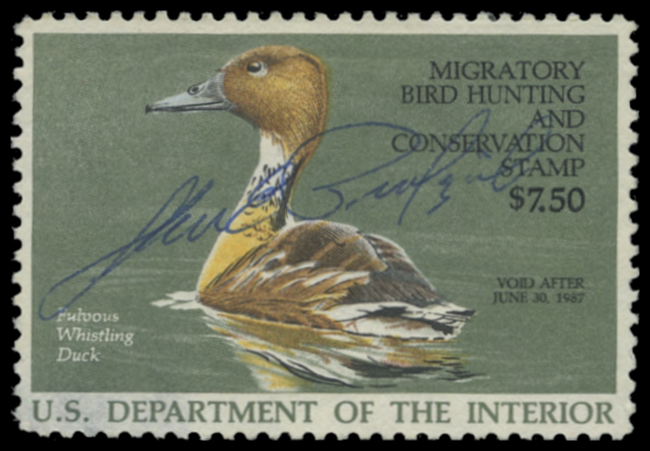 RW53 1986 Federal Duck Stamp. Used. Fine - Very Fine. Fulvous Whist. Duck by Burton Moore Jr.